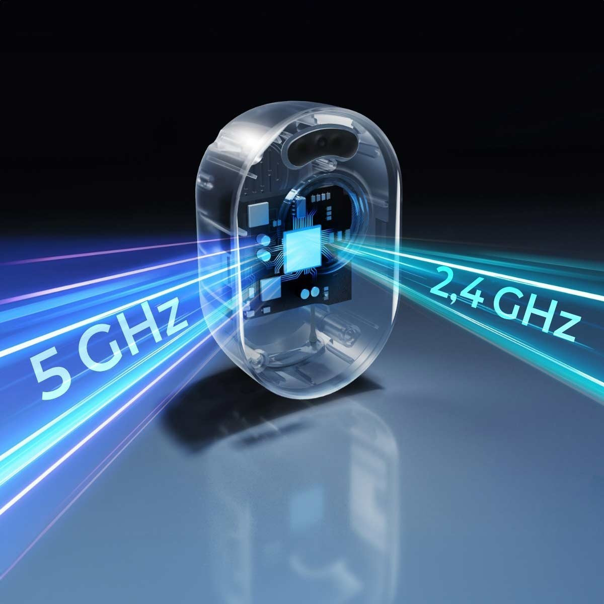 Dvojpásmová technológia Wi-Fi kamery umožňuje pripojenie prostredníctvom frekvenčných pásiem 5 GHz aj 2,4 GHz. Použitie frekvencie 5 GHz poskytuje plynulý živý obraz s vyššou dátovou rýchlosťou a vylepšenými schopnosťami ochrany proti rušeniu, zatiaľ čo frekvenčné pásmo 2,4 GHz je možné použiť na prenos na dlhšie vzdialenosti. Táto dvojpásmová funkcia umožňuje flexibilný výber a jednoduchú inštaláciu. Kamera je tiež vybavená anténami 2T2R MIMO pre optimálnu kvalitu signálu.