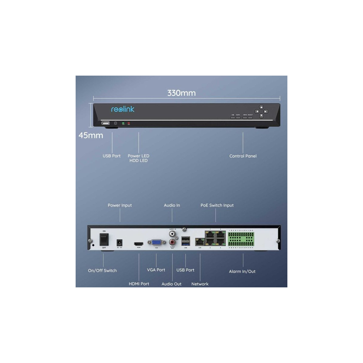 Reolink RLN36 36-kanálový 12 MP sieťový videorekordér s HDMI a VGA výstupom, 8 vstupnými kanálmi alarmu a 4 výstupnými kanálmi alarmu, úložná kapacita až 48 TB