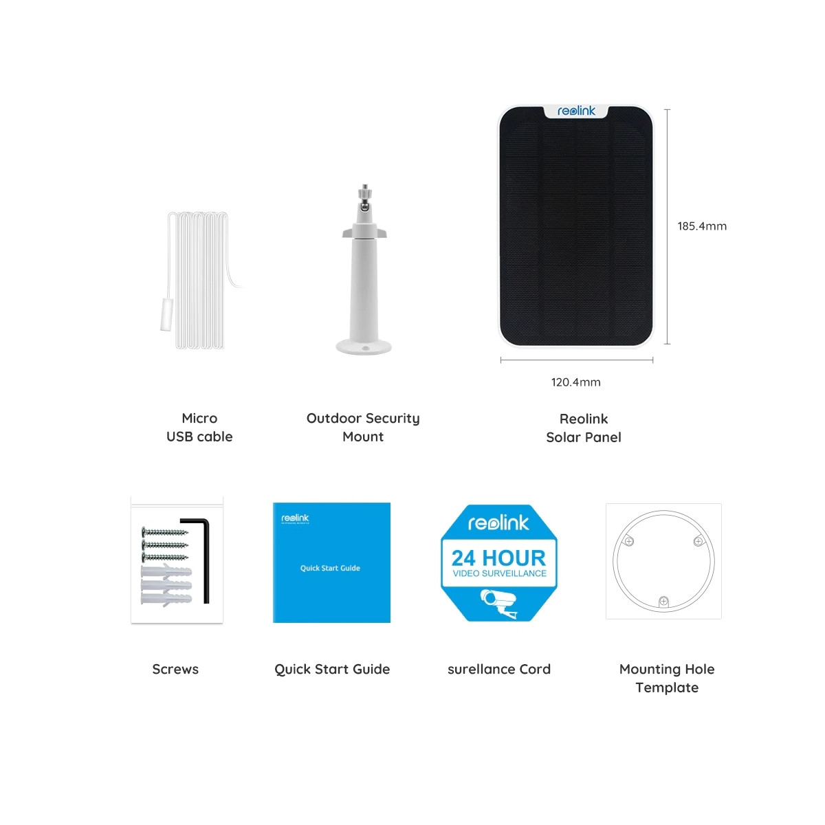 REOLINK Solárny Panel pre batériové kamery ako sú Reolink Argus 2 a Reolink Go... Nastavitelný stojan, Vodeodolný, Kontinuálny zdroj energie kompatibilný s kamerami Reolink s nabíjateľnou batériou - vhodný pre kamery Reolnk Argus 2 a Reolink Go a iné.
