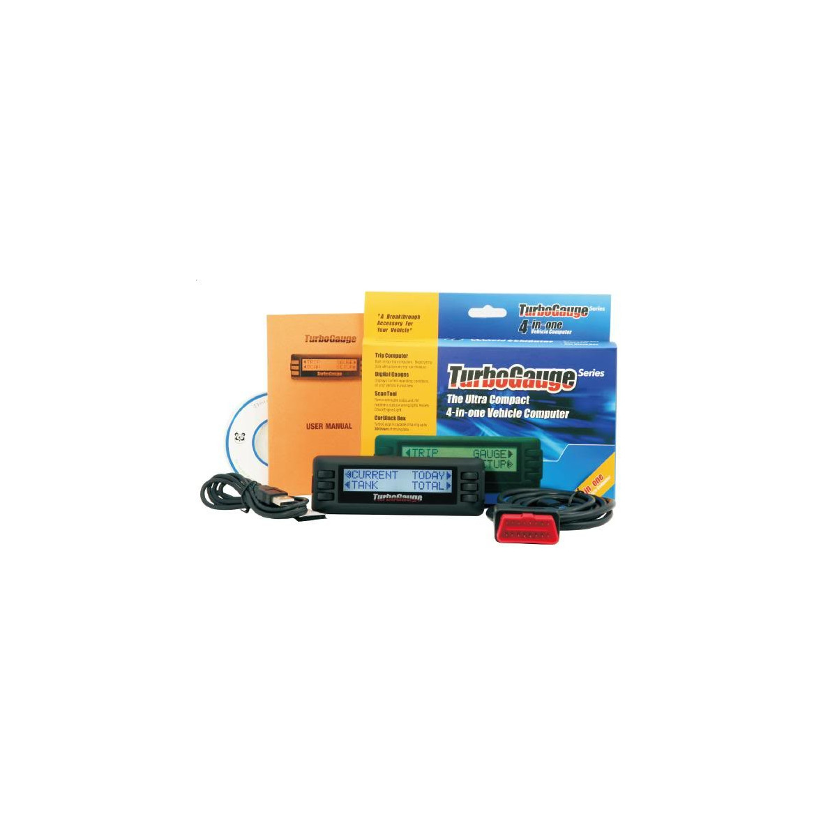 TurboGaugeIV je kompaktný automobilový počítač určený na monitorovanie informácií o vašom vozidle v reálnom čase. Zobrazené sú užitočné informácie ako priemerná spotreba, prejdená vydialenosť na nádrž, priemerná rýchlosť počas jazdy, priemerná rýchlosť na jednu nádrž, vzdialenost do vyprázdnenia nádrže a ďalšie funkcie: