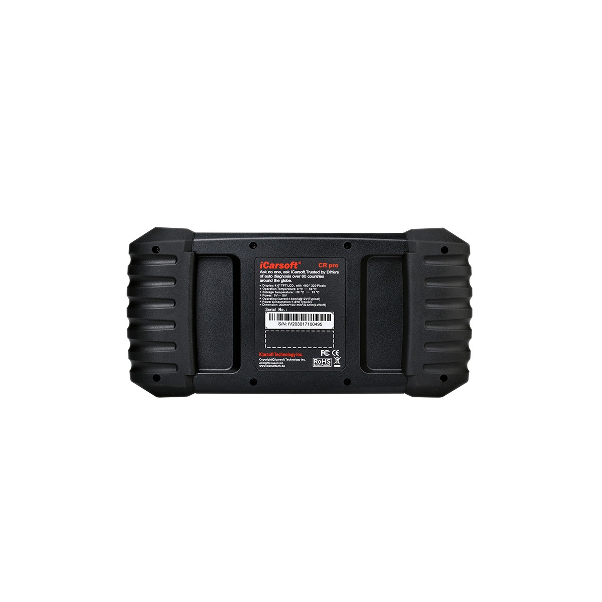 iCarsoft CR PRO je prenosná profesionálna diagnostika s jednoduchou obsluhou. Zariadenie je vybavené farebným displejom. Pre svoju činnosť nepotrebuje laptop. Uložené v plastovom ochrannom púzdre. Súčasťou je TF karta a USB čitačka pre TF karty. Vstavané jazyky: Anglický, Nemecký, Španielsky, Francúzsky, Holandský, Taliansky, Český, Maďarský, Poľský, Švédsky, Fínsky, Portugalský, Ruský, Dánsky, Nórsky.