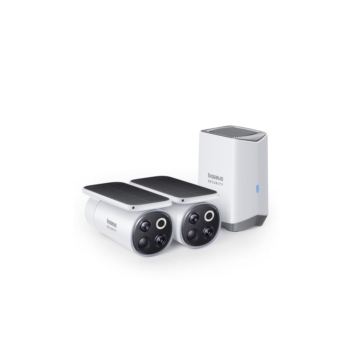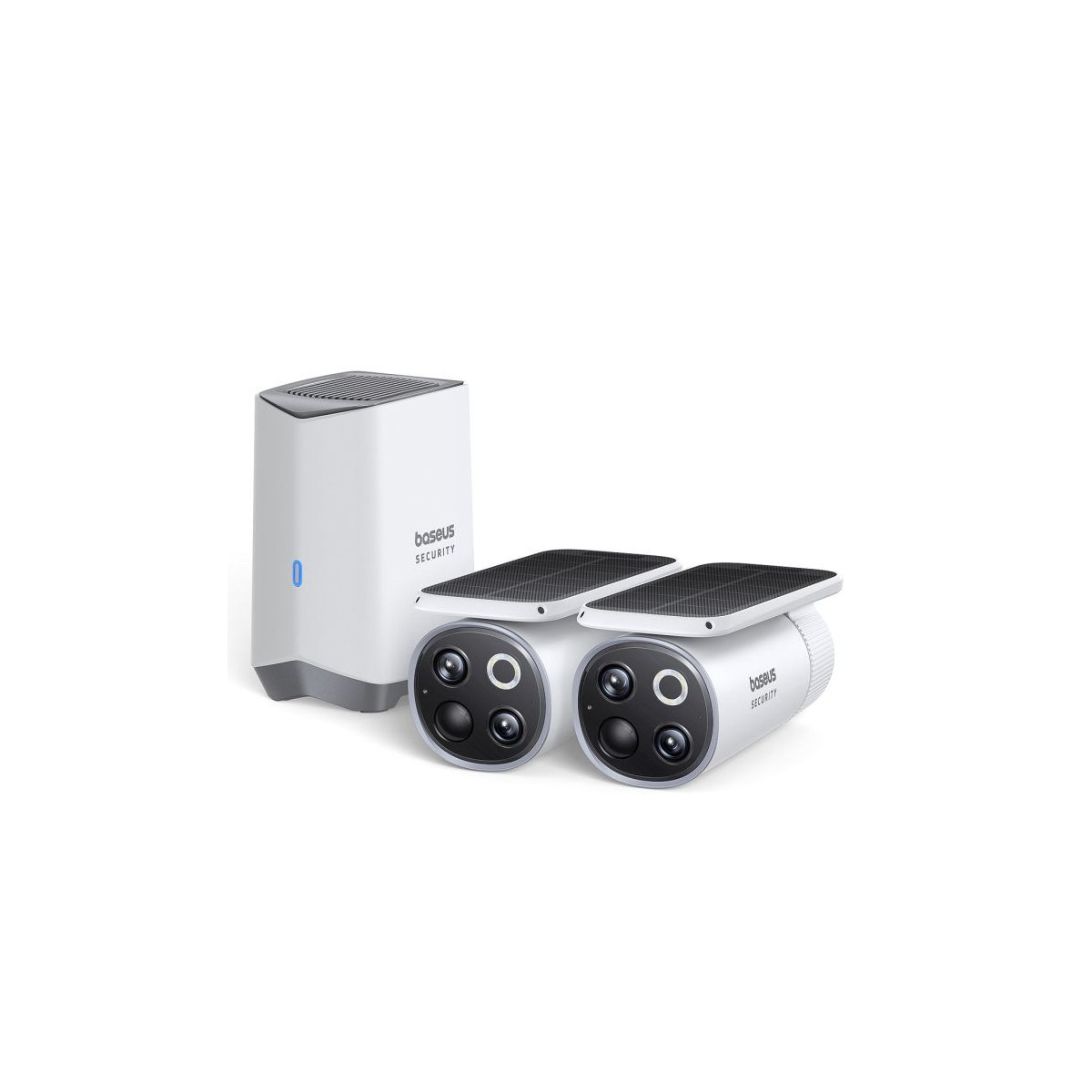 Vonkajšia súprava Baseus Security S1 Pro s H1 HomeStation a 2 batériami napájanými WiFi 3K bezpečnostnými kamerami s dvoma objektívmi, solárnym panelom s automatickým sledovacím systémom, farebným nočným videním