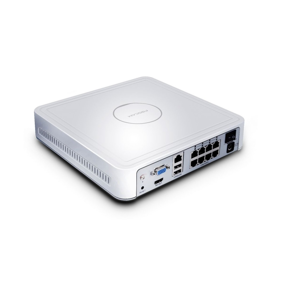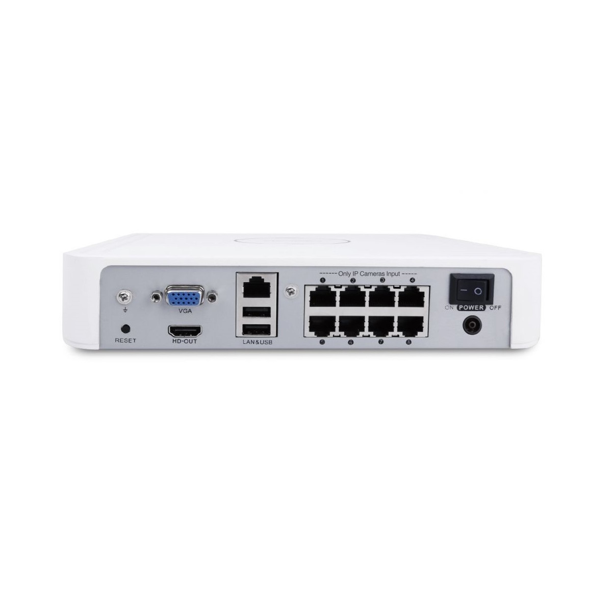 NVR je vybavený predinštalovaným diskom s kapacitou 2TB (rozšíriteľný je až na 4 TB) poskytuje až 14 dní kontinuálneho 24/7 videozáznamu. NVR je 8 kanálový, takže neskôr v prípade potreby je možné doplnenie systému o ďalšie štyri kamery.