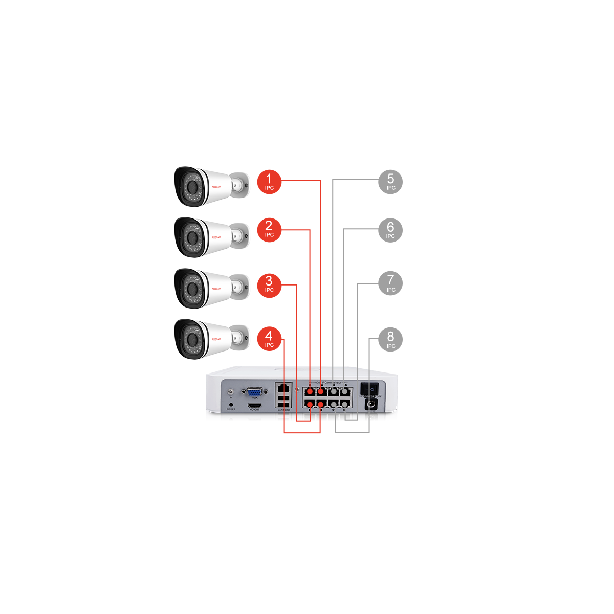 Funkcia jednoduchého automatického spárovania kamier s NVR uľahčuje nastavenie celého bezpečnostného systému u Vás doma, alebo vo firme. Kamery ponúkajú jednoduchú inštaláciu bez nutnosti inštalácie zásuvky 230V v blízkosti kamery (napájanie po LAN kábli - PoE). Systém je kompatibilný s akýmkoľvek monitorom, alebo TV s HDMI alebo VGA konektorom.