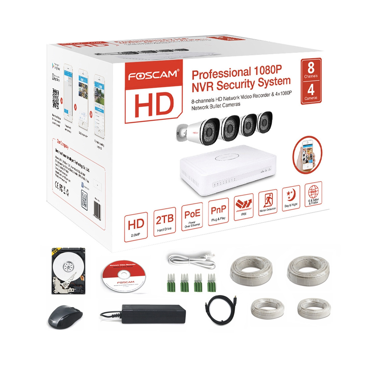 FOSCAM FN7108E-B4-2T je kamerový systém s jednoduchou inštaláciou vybavený štyrmi PoE kamerami s rozlíšeniím 1080p a NVR s nainštalovaným pevným diskom 2TB. Priama komunikácia NVR s kamerami prebieha bez potreby ďalších sieťových komponentov a sieťového nastavovania systému. Kamery sú pripojené LAN káblom k NVR, ktoré sa stará aj o ich napájanie (funkcia PoE). Takže stačí pripojiť monitor, alebo TV (cez VGA, alebo HDMI) k NVR a sledovať.