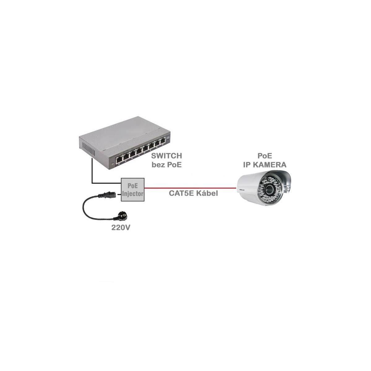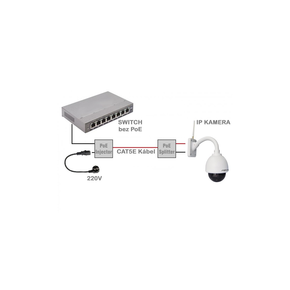 FOSCAM PSE30 PoE (Power Over Ethernet) Injector ponúka jednoduchý, rýchly a cenovo efektívny spôsob ako napájať sieťové komponenty až do vzdialenosti 100m. Napájanie a dáta zlúči do jedného kábla, čím sa eliminuje potreba vytvorenia samostatného napájania pre zariadenie a redukuje sa cena inštalácie. PoE Injector sa umiestni na začiatku trasy za switchom (routrom) kde zlúči dáta a napájanie do jedného kábla. Výstupné napätie je 48V. V kombinácii s FOSCAM PD15 PoE Splittrom je možné napájať aj zariadenia, ktoré niesú vybavené napájaním PoE po kábli (LAN).