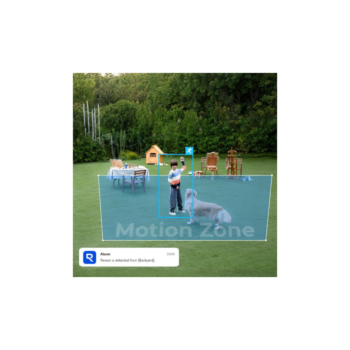 Vďaka integrovanej technológii umelej inteligencie kamera presne detekuje pohyby ľudí, vozidiel a zvierat a posiela vám upozornenia v reálnom čase. Táto funkcia vám umožňuje robiť snímky rýchlo sa pohybujúcich áut alebo iných objektov a odosielať ich e-mailom alebo na FTP server. Hneď ako sa zistí pohyb, budete okamžite upozornení prostredníctvom push notifikácie a e-mailu. Citlivosť detekcie je možné nastaviť, aby sa zabezpečili vysoko presné upozornenia.