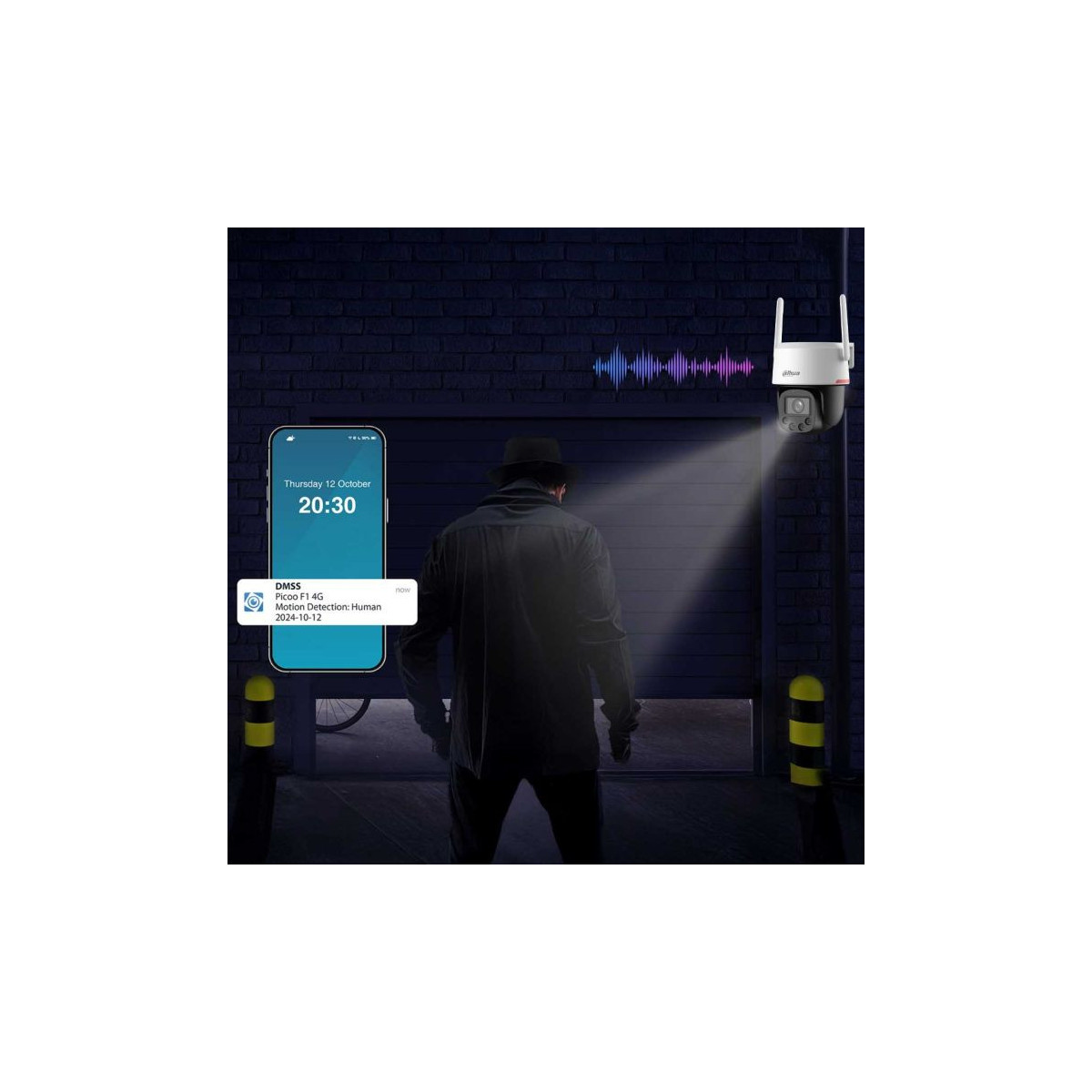 Pre zvýšenie bezpečnosti je možné integrované zvukové a svetelné alarmy ovládať manuálne prostredníctvom aplikácie alebo nastaviť automatickú aktiváciu. Bezplatná aplikácia Dahua poskytuje okamžité upozornenia na neočakávané udalosti. Technológia obojsmerného ozvučenia umožňuje komunikáciu s návštevníkmi na diaľku alebo odradiť nechcených hostí.