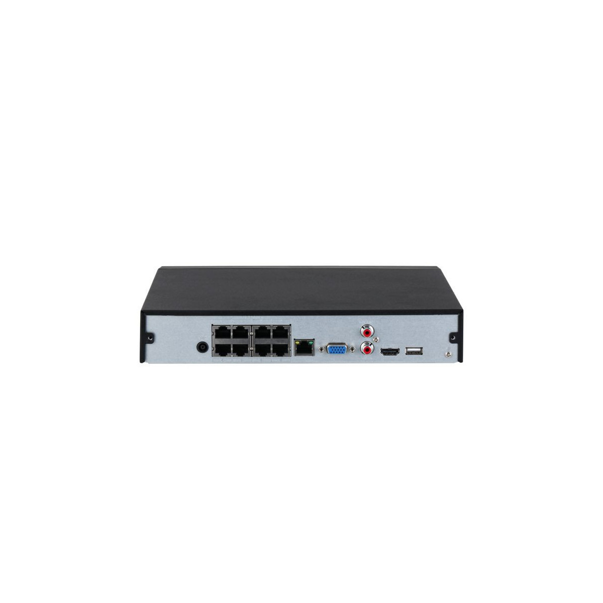 Kompaktné 1U šasi rekordéra vyžaduje minimálny priestor a možno ho flexibilne umiestniť na poličku alebo do serverového racku. Osem PoE portov umožňuje priame pripojenie kamier a súčasné napájanie aj dáta. Samostatné napájacie zdroje nie sú potrebné, čo zjednodušuje nastavenie a výrazne znižuje kabeláž.