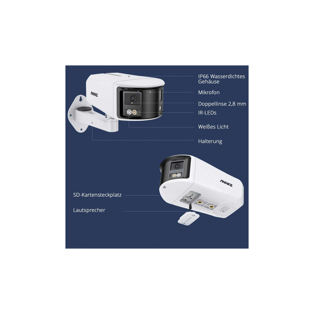 ANNKE I91DW 4K Ultra HD PoE IP bezpečnostná kamera s duálnymi objektívmi, 180° panoramatickým pohľadom, farebným nočným videním, inteligentnou detekciou osôb a vozidiel