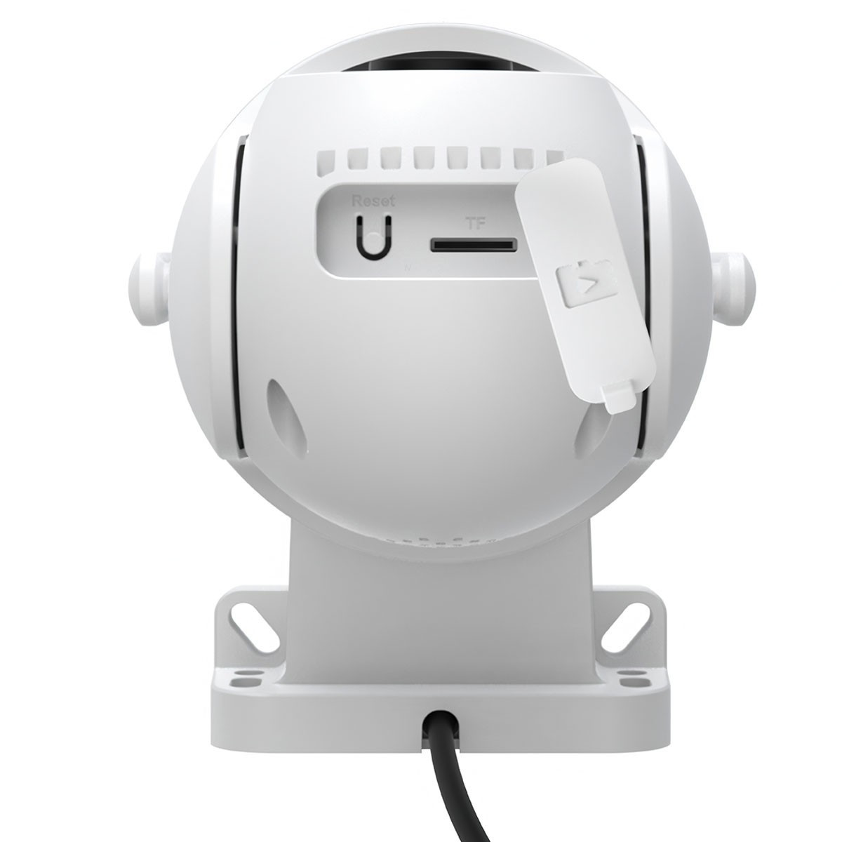 S horizontálnym otáčaním o 355° a vertikálnym otáčaním o 90° kamera pokrýva zorné pole takmer 360°. Keď je zistený potenciálny votrelca, aktivuje sa reflektor kamery a siréna alarmu, aby sa odradili potenciálni páchatelia.
