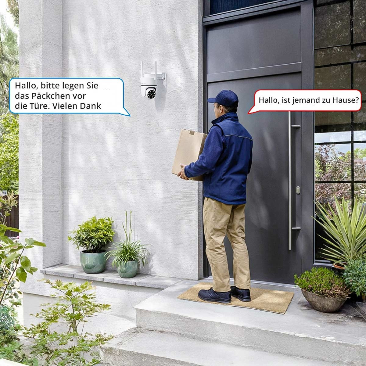 Farebný obraz je možný aj v tme. Foscam PD5 podporuje obojsmerný zvuk vďaka vstavanému mikrofónu a reproduktoru . To vám umožňuje komunikovať s vítanými hosťami a oslovovať nechcených návštevníkov bez ohľadu na ich polohu.
